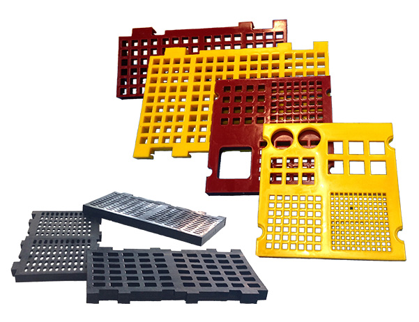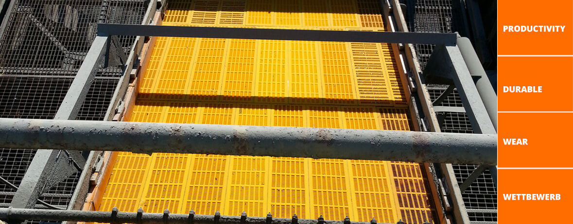 • Widerstand gegen Verschleiß und Stöße. • Hohe Siebkapazität. • Einfache Montage, einfacher Austausch. • Bessere Arbeitsbedingungen, leiser Betrieb. • Keine Beschädigung von abgeschirmten Materialien. • Niedrige Siebkosten. • Viel längere Lebensdauer im Vergleich zu Draht- und Blechsieben. • Polyurethan-Siebe sind flexibel und vermeiden das Kleben von Materialien. Dank der konischen Form der Sieböffnungen wird die Verstopfung der Öffnungen verhindert. • Durch die glatte Sieboberfläche werden die ausgesonderten Materialien gleichmäßig auf der Oberfläche verteilt.